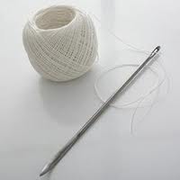Aiguille à brider et ficelle