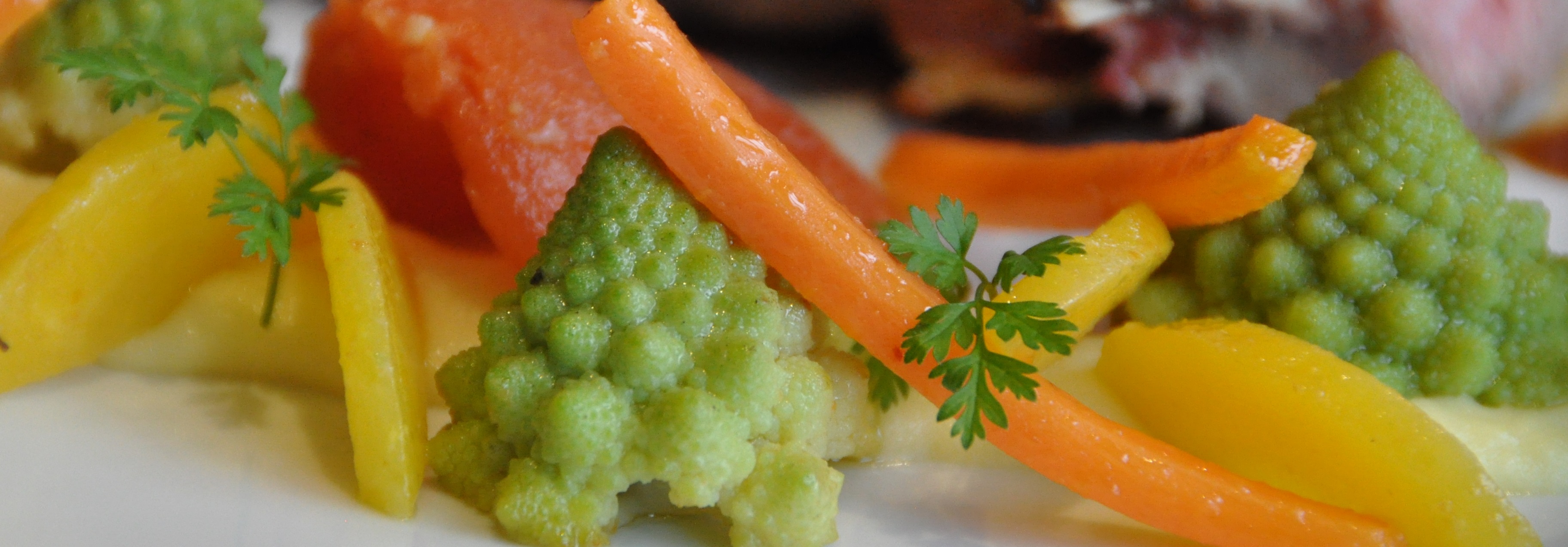 Peler et détailler les carottes en petits bâtonnets,  la carotte jaune en biseaux. Faire cuire dans de l’eau bouillante salée quelques instants selon la taille de vos légumes, mais les garder al dente.