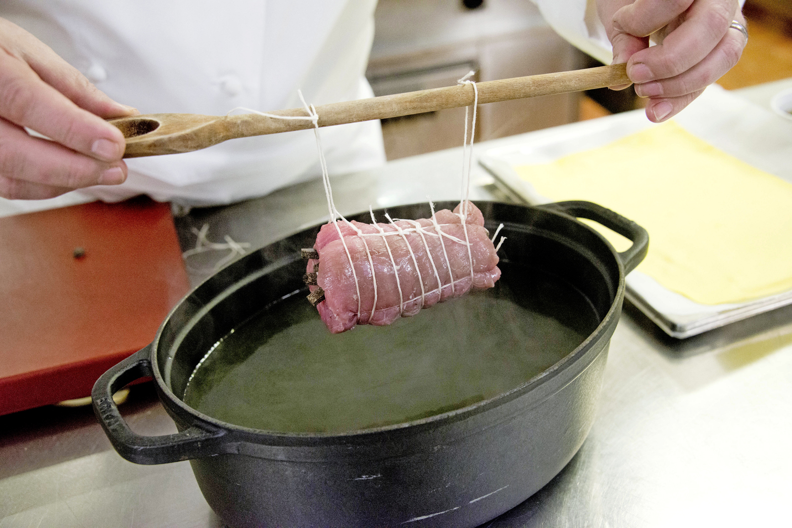 Brent, 04 décembre 2013, Préparation du menu de Noël chez Stéphane Decotterd, chef du restaurant Le Pont de Brent. Ici, préparation du plat principal. ©Florian Cella