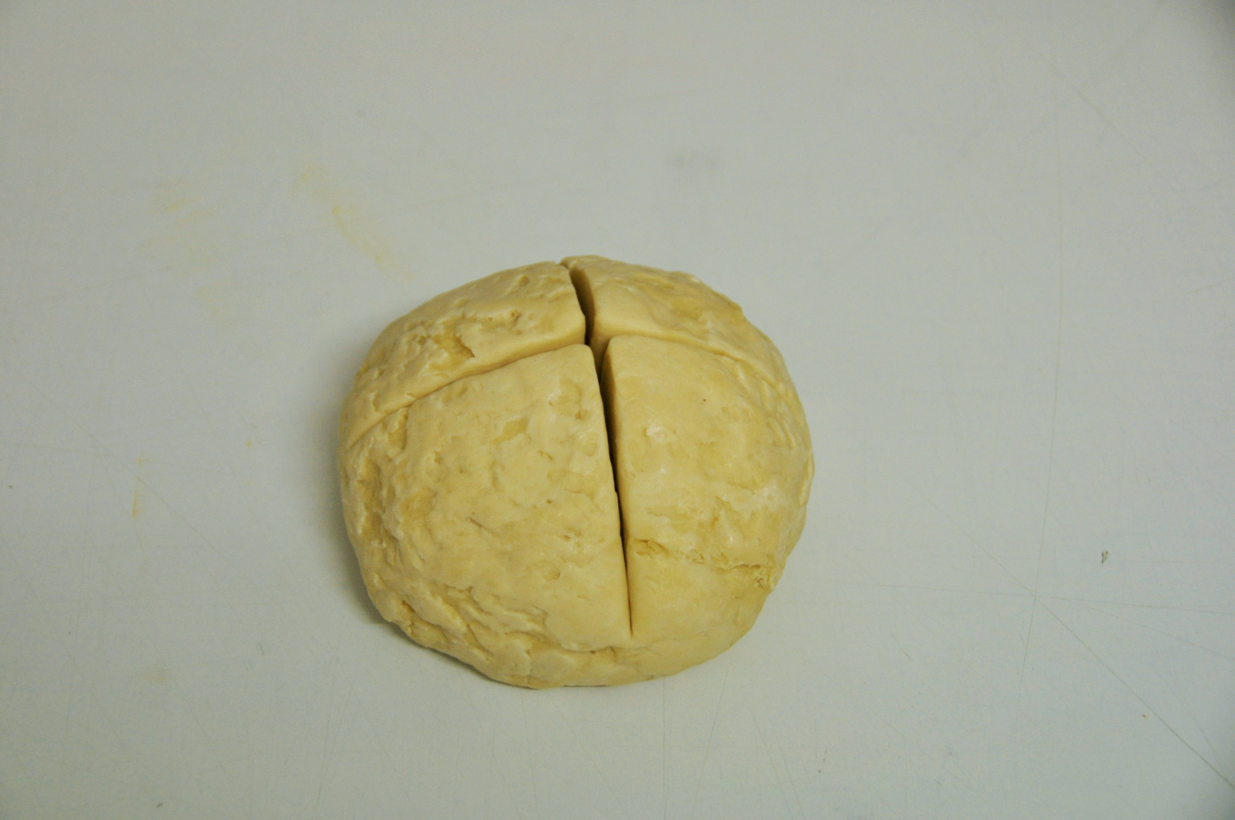 Déposer la détrempe sur le plan de travail et l’inciser en forme de croix.