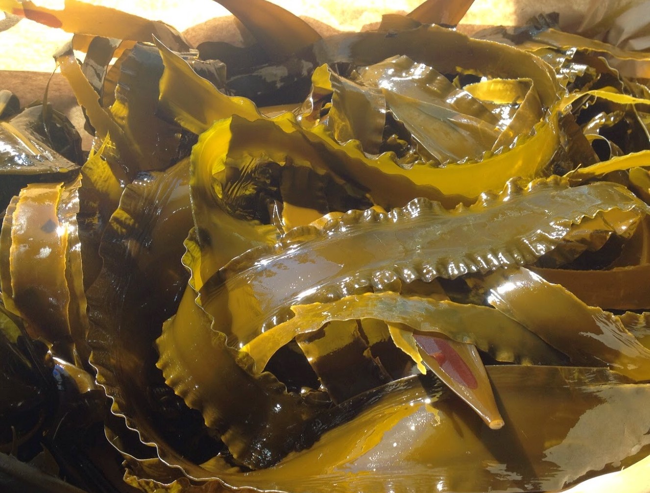 Appelée également « Baudrier de Neptune », c’est une des algues les plus majestueuses de l’océan. Elle peut atteindre jusqu’à 100 mètres de long! (photo plus haut)